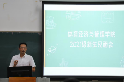 随后,体经公司副经理张丛杉老师着重讲述了本院的课程安排、学科介绍、教学内容等等。此外,张丛杉老师还给新生们提供了许多有用的学习建议,他期望每一位同学能够在未来积极主动地与老师进行交流,吸收有益经验。就课程安排问题来讲,他希望每一位同学都能够合理安排时间,有条不紊的完成学业任务,同时不断充实提升自己。