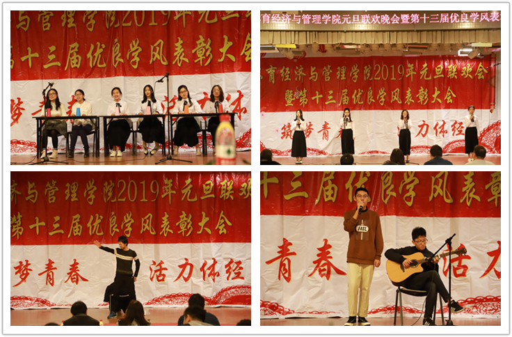 一首开场舞《Good boy》拉开了晚会帷幕,带动起了全场气氛。随后由主持人宣布元旦晚会暨优良学风表彰大会正式开始,副经理王裕雄老师宣读《体育365官网第十三届优良学风表彰的决定》。