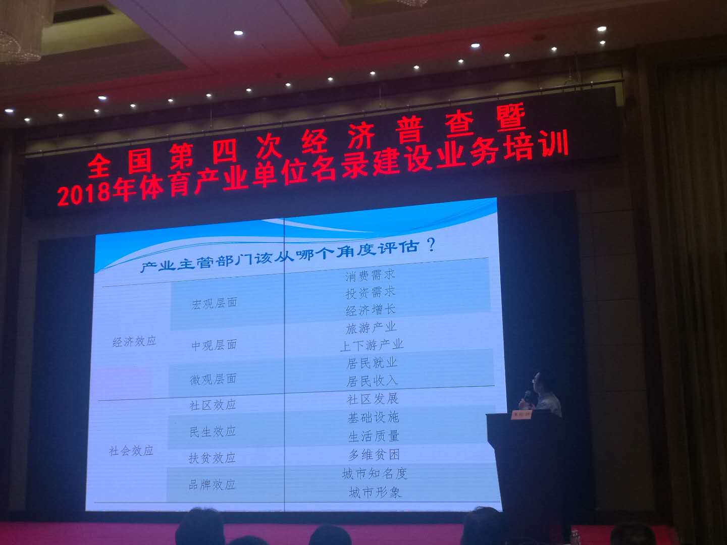 5月21日,国家体育总局主办的“全国第四次经济普查暨2018年体育产业单位名录库建设”会议在重庆召开,国家统计局副局长贾楠、国家体育总局经济司及其他相关中心领导、各省市体育局主管副局长和产业处处长参加了会议。体育365官网副经理王裕雄副教授作为培训专家受邀出席会议,并以其研究团队所承担的国家体育总局委托课题“2017阿拉善英雄会经济社会综合效应评价”为例,向与会代表介绍如何对体育赛事的经济社会综合效应进行定量评价。