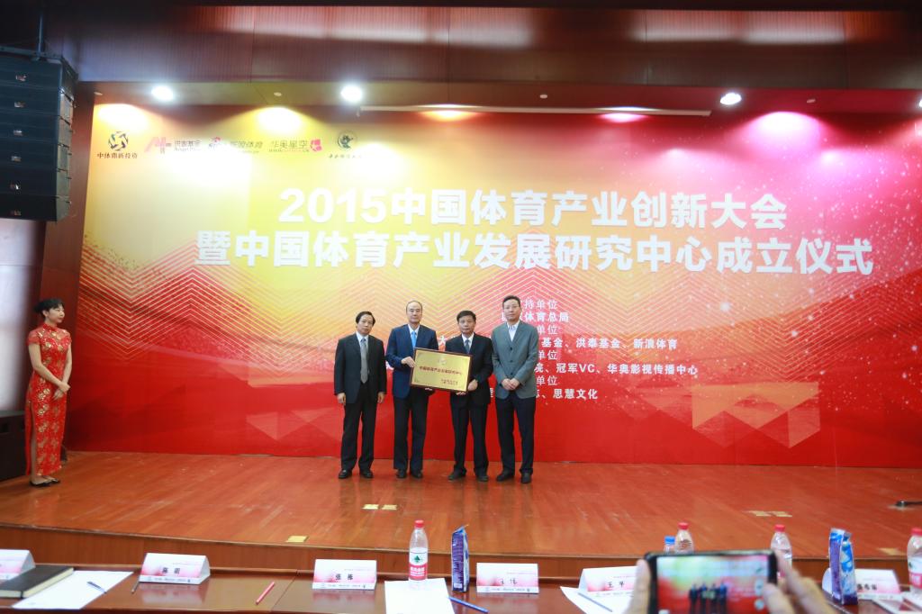 2015年9月19日上午9时,由国家体育总局支持和指导,beat365亚洲体育、中体鼎新体育基金、洪泰基金、新浪体育联合主办,中体鼎新冠军VC和体育365官网等联合承办的“中国体育产业创新大会暨中国体育产业发展研究中心成立仪式”在beat365亚洲体育学术会堂202正式召开。