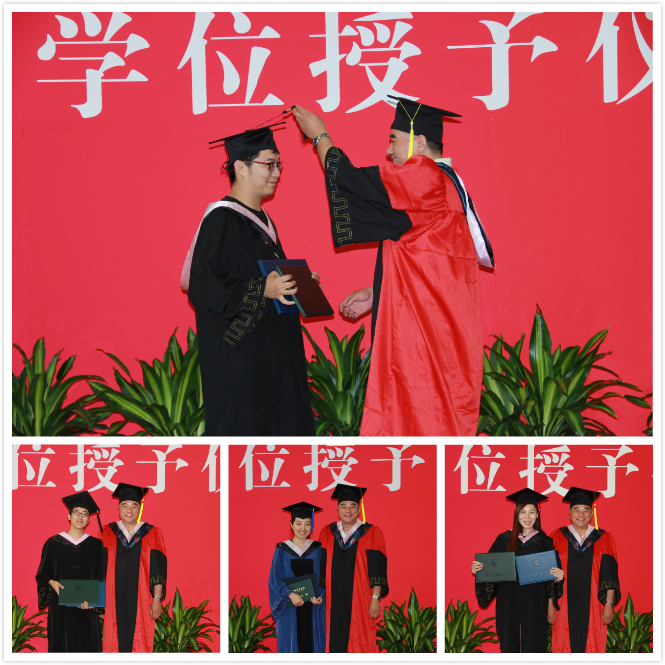 毕业典礼结束后,体育365官网举行了隆重的学位授予仪式。经理高涵教授为每一位毕业生颁发了毕业证书和学位证书并拨穗,张自如副经理宣读学位授予名单。