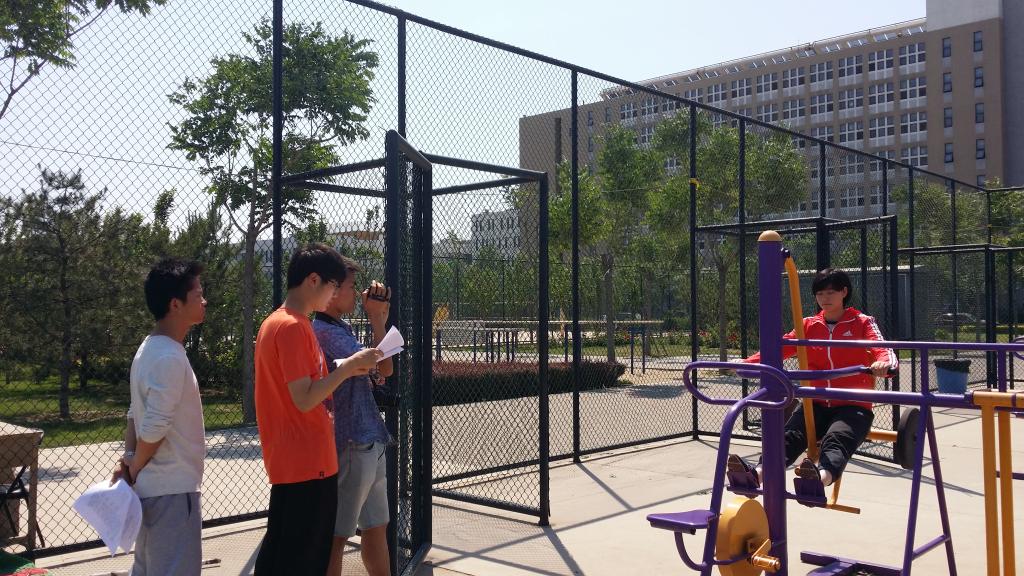 在视频拍摄过程中,每一步工作我们都非常用心。从开始撰写脚本到脚本的定稿,前后一共修改了四次;拍摄视频时,老师和同学们不畏狂风、烈日,根据事先准备好的剧本演练,出镜人员面对镜头不断示范如何操作或使用健身器材,负责旁白的同学进行必要的语言补充;字幕、配音、配乐、片段剪辑……每一步都是老师和同学们亲力亲为,每一步都是智慧与汗水的结晶。