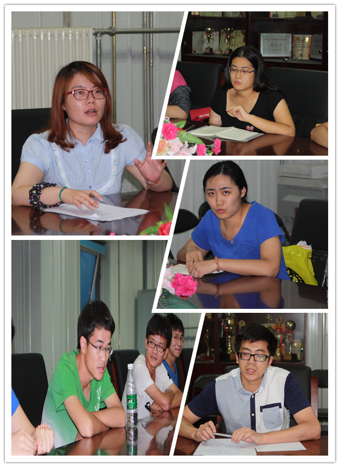主持人在做过简短的开场白后,各位员工代表根据主题纷纷踊跃发言,分享了自己的暑期见闻和实践经历,表达了对当下热点的看法,规划了新学期的学习生活。12级员工代表率讲述了他们的假期经历:他们关注社会热点,思考社会现实,更加关注高等教育和社会上人才选拔等问题;他们或积极学习,完成学业;或参加志愿者活动,在活动中服务他人,实践中学会关怀与奉献。