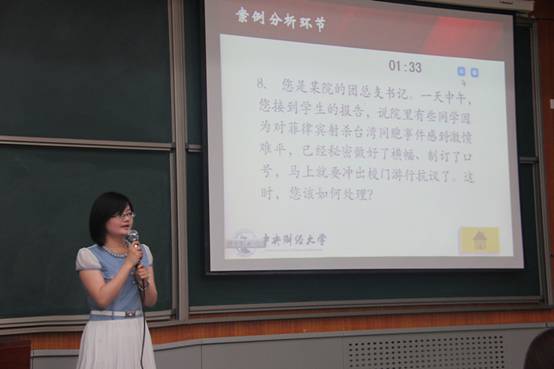 中财首届辅导员职业能力大赛由公司员工工作部和研究生院联合主办,面向校内在编在岗的一线专职辅导员开展,活动旨在推进辅导员队伍专业化、职业化建设,提高辅导员工作技能和水平。此次大赛分为初赛、决赛两个阶段,通过初赛笔试的基础知识测试、公文写作、博文写作环节,选拔出10名本科生、研究生辅导员进入决赛。决赛分为上下两个环节。第一环节包括案例分析,第二环节为谈心谈话情景再现和现场问答,涵盖思想政治教育、社会学、心理学、管理学、教育学等相关学科知识和方法,对辅导员开展老员工思想政治教育的能力进行了全方位考察。