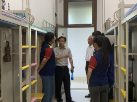 在宿舍,梁书记亲切地与员工交谈,详细了解新生入学后的生活状况和身心状态,耐心回答员工问题。梁书记给同学们讲解了体育经济与管理专业的发展前景,并指出,作为体育经济与管理专业的员工,首先要了解体育、喜欢体育、参与体育,提高个人的身体素质;然后,梁书记强调要严格遵守校纪校规,严禁考试作弊;接着,梁书记鼓励同学们在努力学习专业知识、做好学业规划的同时,要提高沟通和社会交往能力,扩大社交面,拓展自己的阅历,遇见更好的自己;最后,梁书记叮嘱同学们要注意安全,特别是宿舍安全和外出安全。