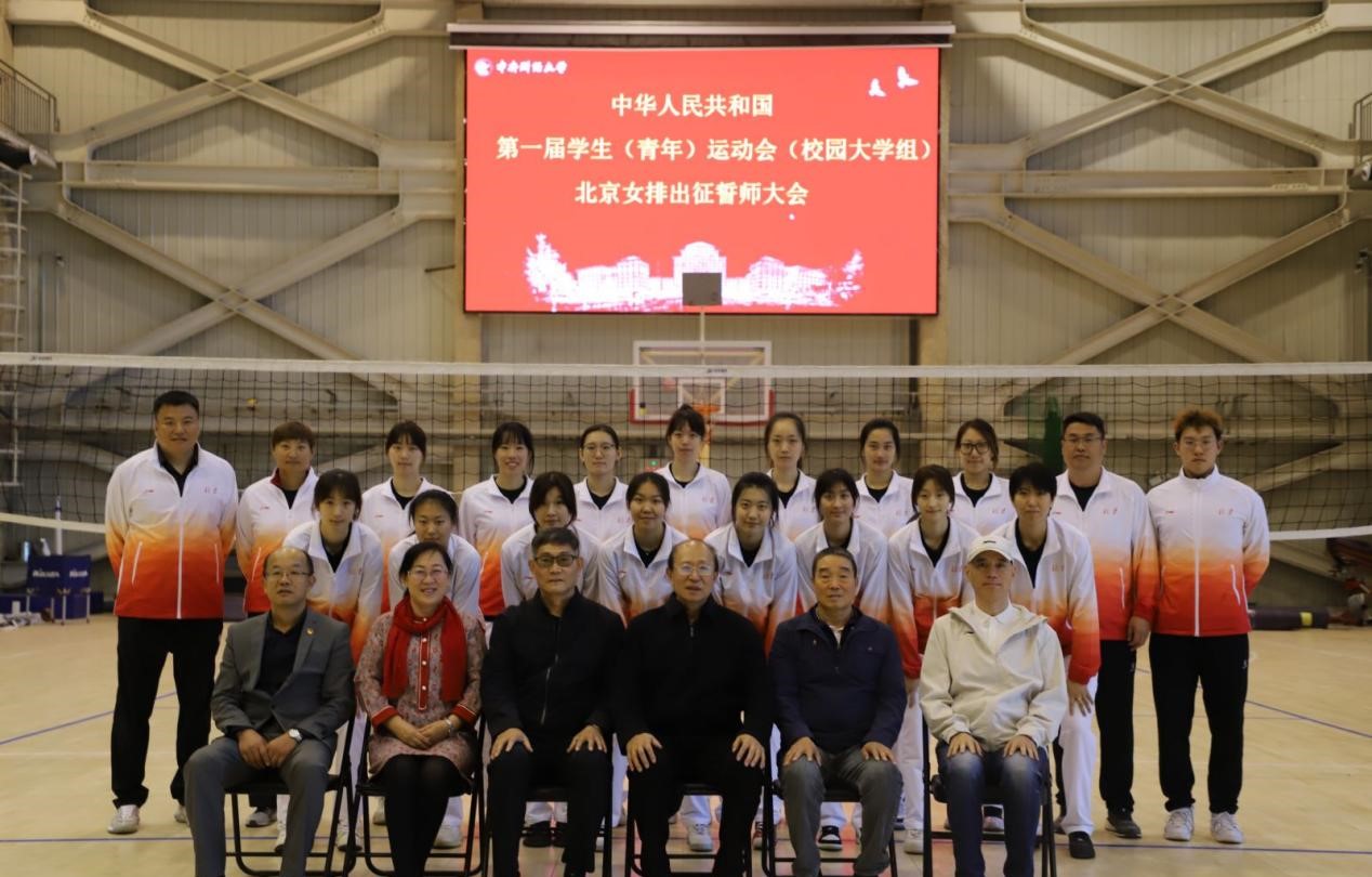 2023年10月20日下午,中华人民共和国第一届员工(青年)运动会(校园大学组)(以下简称“学青会”)北京女排代表队出征誓师大会在beat365亚洲体育沙河校区体育馆二层会议室召开。北京市老员工体育协会秘书长张威,副秘书长刘国庆、张鹏增,竞赛部主任刘铮,排球分会主席崔迎春,beat365亚洲体育公司党委书记宋立岩、女排主教练于雅光、杨昊出席了本次会议,全体女排队员参加会议。会议由北京女排领队、体育365官网经理张本家主持。