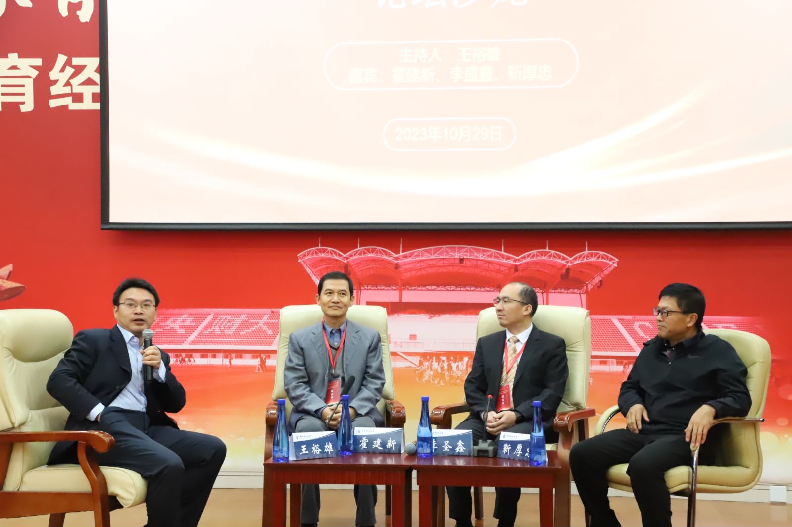 会上还举办了“体育经济发展、团队建设与人才培养”论坛沙龙,特邀嘉宾霍建新、李圣鑫、靳厚忠参加了本次论坛沙龙。沙龙由中国体育产业发展研究中心主任王裕雄教授主持。