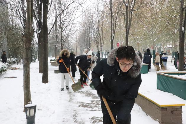 在活动过程中,不仅有老师的悉心指导,还有员工们的积极参与。员工党员们积极响应号召,他们或是手持铁锹铲雪,或是用扫帚清扫雪屑,每一个动作都展现了年轻人的活力和对社会负责的态度。通过两个小时的共同努力,原本被积雪覆盖的校园道路和操场很快恢复了往日的整洁与秩序,师生们不仅清理了积雪,更在这场冬日的雪景中播撒了希望的种子。每一次的扫雪都是对环境的呵护,每一次的劳动都是对责任的践行。