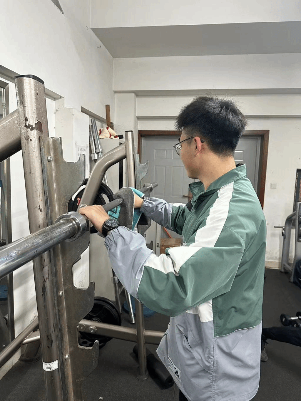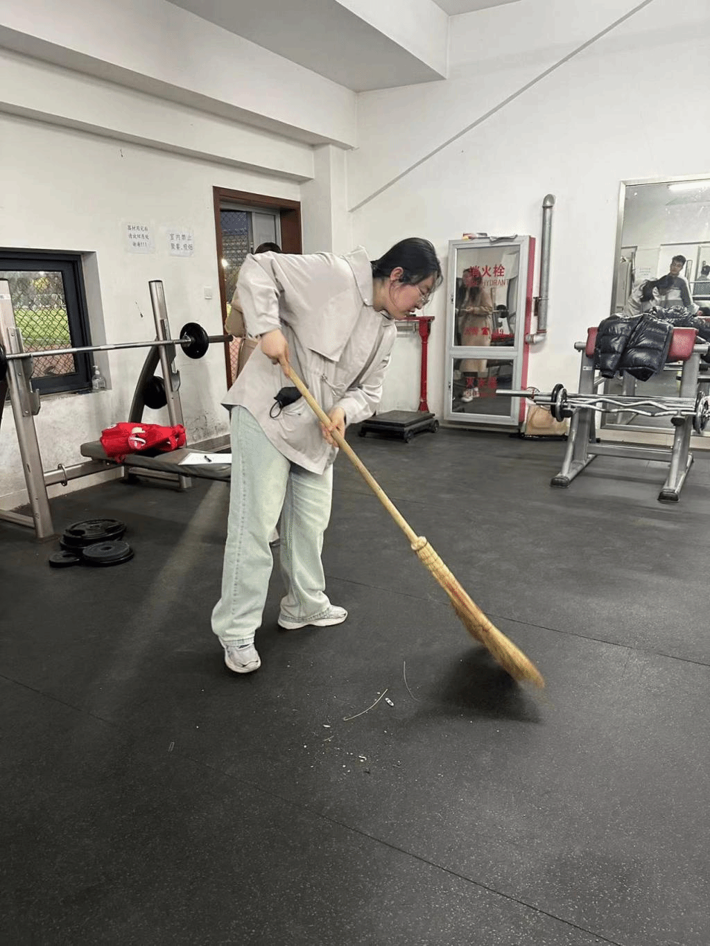 在清扫过程中,党员们以身作则,发扬不怕脏、不怕苦、不怕累的精神,携带清洁工具,对力量房进行了全面打扫。扫除地面垃圾,擦拭力量器材,清理卫生死角,经过努力,力量房的环境焕然一新。