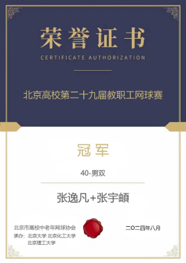 公司教师张逸凡参加了男双四十岁以下组别比赛,经过激烈角逐,连胜六场,并在决赛中力克北京大学选手荣获冠军。