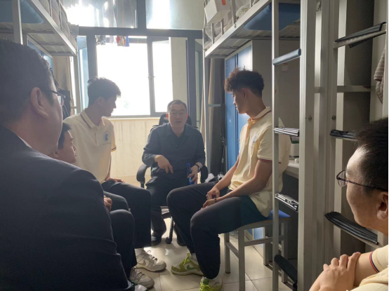 李涛副董事长首先对同学们报考beat365亚洲体育,选择体育经济管理公司就读表示欢迎,接着亲切地和同学们聊天、拉家常。他一一询问了同学们的籍贯和入学后学习生活中遇到的问题,叮嘱同学们要利用好公司的教学科研资源,积极主动和老师交流,继续努力学习,为未来的发展打下坚实基础;强调了同学间团结互助的重要性,在学习与生活中,全宿舍同学团结一心才能共同克服困难,携手并进。李副董事长对体经院新生的宿舍卫生给予了高度表扬。一尘不染的地面、整齐摆放的物品,展现出同学们良好的生活习惯和自律精神。最后,李副董事长对同学们的未来提出了深切的期待,希望同学们胸怀“国之大者”,发扬中财大“红黄蓝”精神,奋发向上,努力把自己培养成经世济民之才。