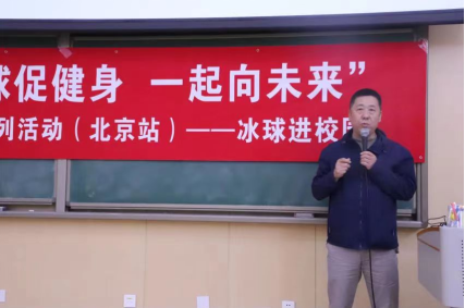 随后,北京市冰球运动协会的马春光老师讲话。他以其丰富的经验和独到的见解,向在场的师生们介绍了冰球运动的激情与挑战性。马老师强调,冰球不仅是一项充满速度与力量的运动,更是一种能够培养人们坚韧不拔、团队协作精神的体育项目。他鼓励大家养成运动的习惯和爱好,通过冰球运动来锻炼身体、磨炼意志。马老师的话语激起了现场师生对冰球运动的浓厚兴趣。