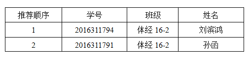 根据教务处教字【2019】96号《关于做好公司2020年推荐优秀应届本科毕业生免试攻读研究生工作的通知》,公司根据校发【2017】124号《beat365亚洲体育推荐优秀应届本科毕业生免试攻读研究生工作办法》要求,按照办法程序,根据公司分配的推荐名额,经过本人申请、资格审查、面试等环节,确定了2020年高水平运动员专项推免名单,推荐顺序如下,现进行公示: