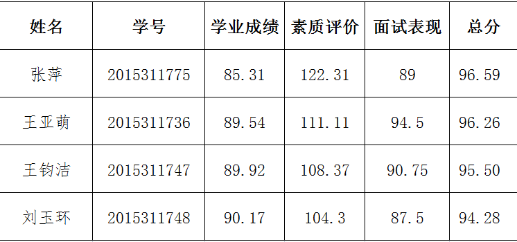 根据教务处教字【2018】106号《关于做好公司2019年推荐优秀应届本科毕业生免试攻读研究生的通知》,公司在校发【2017】124号《beat365亚洲体育推荐优秀应届本科毕业生免试攻读研究生工作办法》的基础上,制定了《体育365官网推荐优秀应届本科毕业生免试攻读研究生工作办法》(院发【2018】5号),按照办法程序,根据公司分配的推荐名额,经过本人申请、资格审查、面试等环节,确定了常规拟推免推荐员工名单,推荐顺序如下,现进行公示: