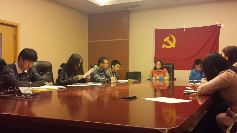 2014112日,公司本科生第一党支部于公司南路校区学术会堂602会议室内召开党员发展大会暨员工党员先锋工程学习专题会。此次大会由支部书记赵薛忆同志主持,公司党总支书记林琼同志列席本次大会。此次会议中,支部同志们听取并讨论了司渊喆同志的转正申请及接收发展对象龚冠宇、陈亮、高翔三位同志为预备党员的情况,并认真聆听学习了党总支书记林琼同志关于如何发挥员工党员先锋模范带头作用的指导与教育。